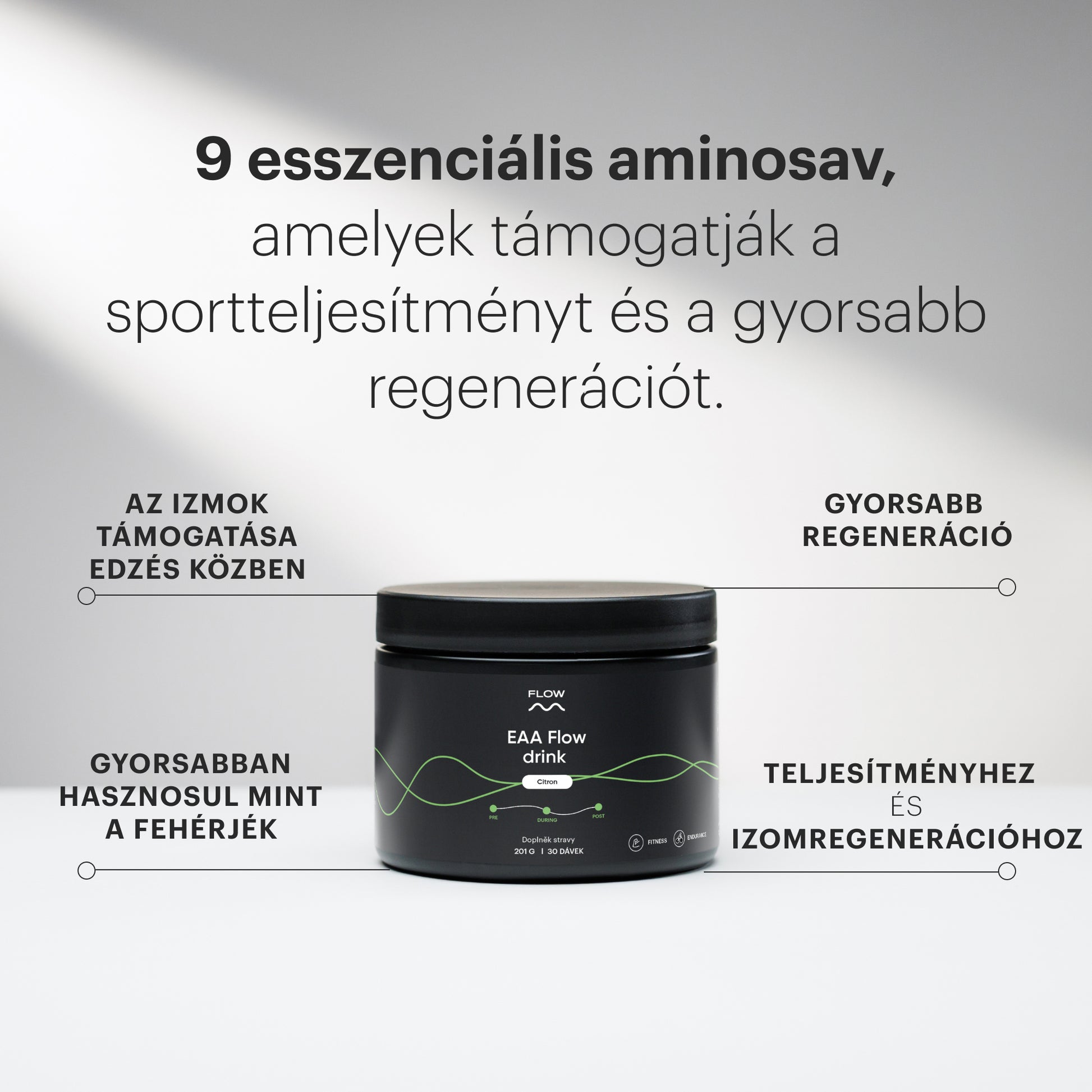 Prémium minőségű, leucinnal gazdagított esszenciális aminosav-keverék, tudományosan meghatározott arányban – a sportteljesítmény és a regeneráció támogatására.